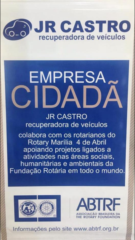O braço financeiro do Rotary é a Fundação Rotária e é através dela que o Rotary desenvolve os Projetos Humanitários no Mundo inteiro, no Brasil, no Estado e no Município, que tanto contribui para um Mundo mais Humano, mais Justo, mais Igualitário e estas empresas a seguir é quem ajudam nosso clube, com os recursos financeiros necessários, inclusive os sócios do Rotary Club Marilia 4 de Abril, que é o 1º Clube Cidadão do Distrito 451.