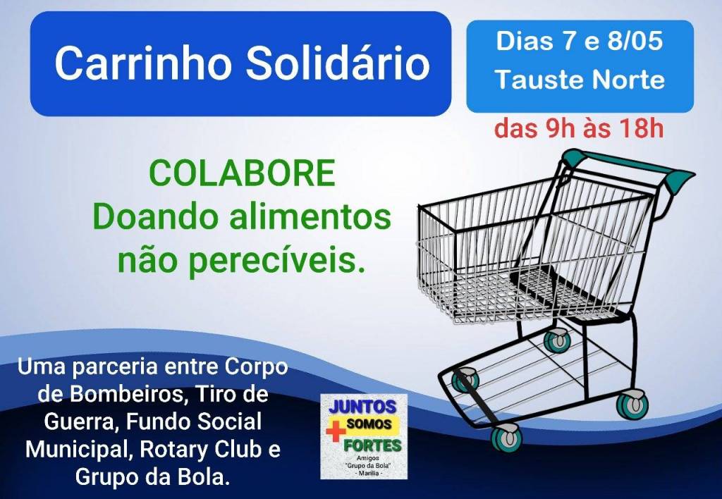 Nos dias 07 e 08 de Maio realizamos a 2ª ação do Carrinho Solidário no Supermercado Tauste da Zona Norte, onde arrecadamos 600 quilos de Alimentos, sendo que no Tauste Sul nos dias 16 e 17/04 arrecadamos 2,5 toneladas, perfazendo nas duas ações mais e 3 toneladas de alimentos. Estas ações foram em conjunto com os Rotary Clubes de Marilia, Corpo de Bombeiros, Tiro de Guerra, Fundo Social Municipal, Grupo da Bola e OAB Marilia.