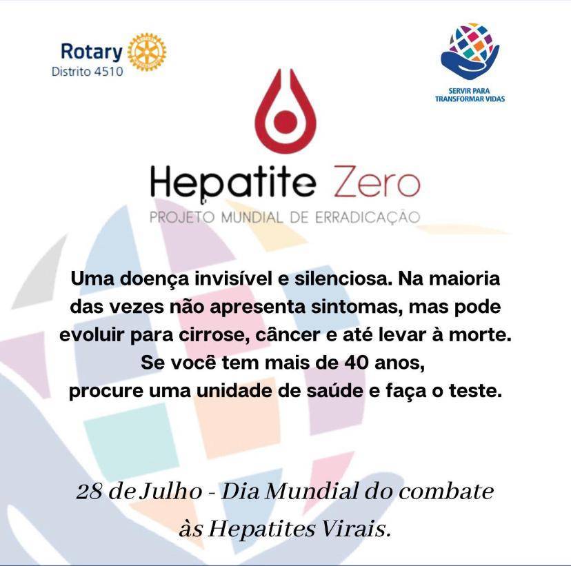 O Rotary Club através da Fundação Rotária lançou em 28 de julho de 2015 o Projeto Mundial Hepatite Zero para Combate a Hepatite B e C e sua erradicação até 2030. Participe você também deste Grandioso Projeto Humanitário.
