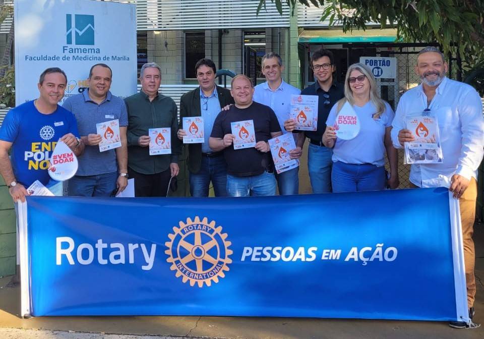 Os novos Presidentes dos Rotary Clubs de Marília e Vera Cruz fizeram doação voluntária de sangue no Hemocentro de Marília, como forma de mostrar sua união em defesa das causas da humanidade.