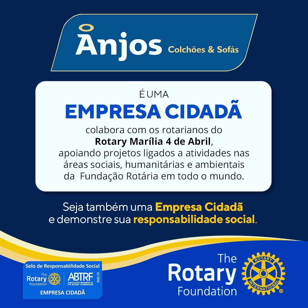 Anjos Colchões & Sofás, mais uma empresa que contribui para o Rotary Club de Marília 4 de Abril, proporcionando investimentos a projetos humanitários da Fundação Rotária, em Marília, no Brasil, e em todo o mundo.