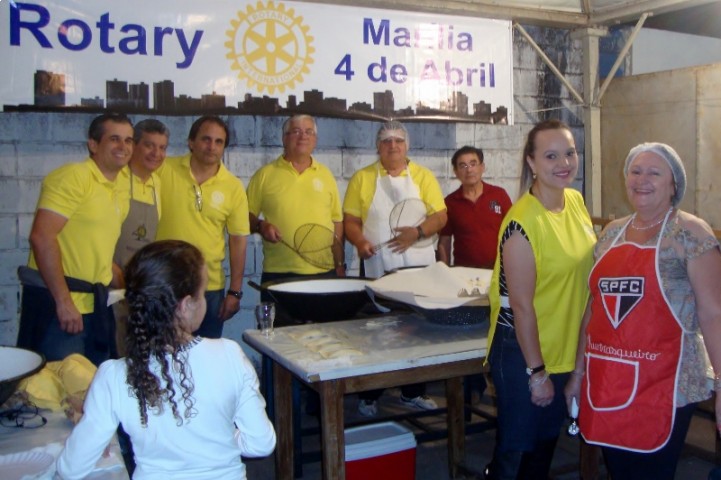 O Rotary Marília Quatro de Abril doa ingredientes, que são preparados e comercializados por seus integrantes, auxiliados por uma equipe de voluntários que todo ano põe em prática o lema maior do Rotary, que é o "Dar de Si Antes de Pensar em Si". A receita da venda dos pasteis, em número superior a mil unidades, assim como ocorre em todas as outras barracas, é transferida integralmente para a APAE.