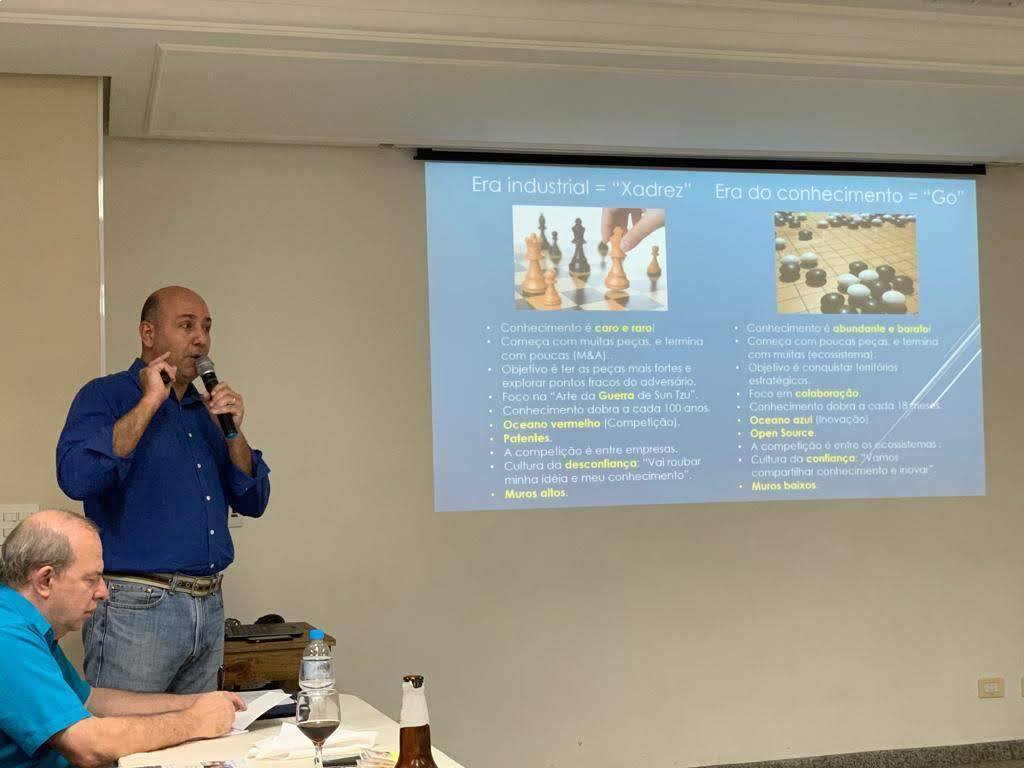 Alguns saltos na evolução da tecnologia, como o surgimento da agricultura ou as primeiras revoluções industriais, são fatos marcantes na história humana, que provocam mudanças marcantes na sociedade e na vida das pessoas. O palestrante abordou o atual momento de acelerada evolução tecnológica que vivemos, que proporciona o acesso universal à informação, e as consequências que já se manifestam e outras que ainda estão por vir, em um futuro bastante próximo, alterando as relações entre as pessoas e as empresas e revolucionando todo o mercado de trabalho, fazendo surgir novas profissões, ao mesmo tempo que torna obsoletas profissões hoje tradicionais.